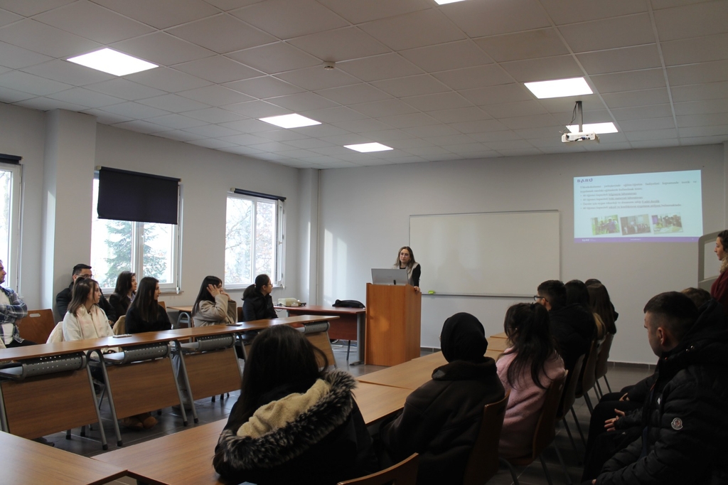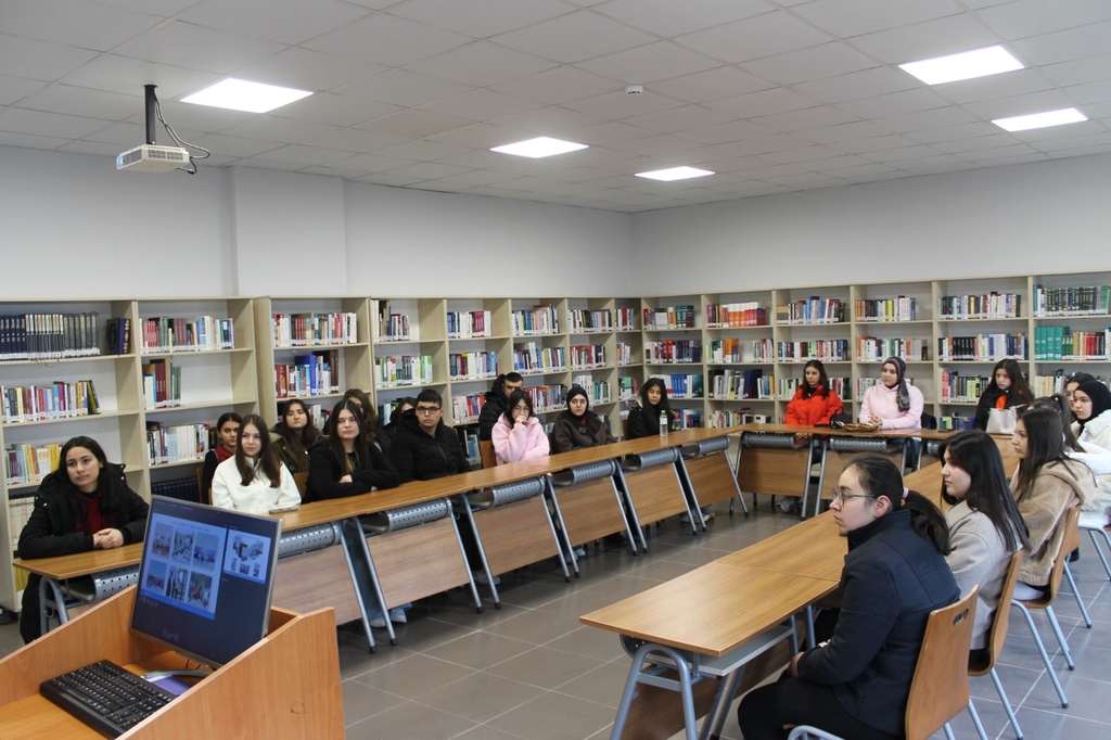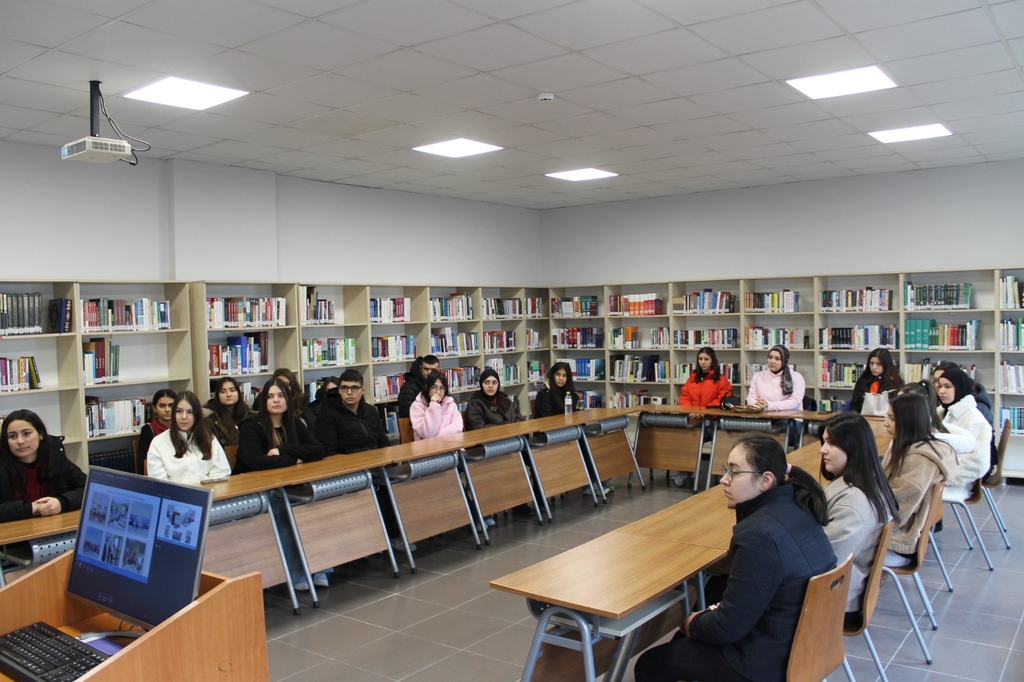 Ziyaret programı çerçevesinde öğrencilere, Birim Toplumsal ve Kültürel Faaliyetler ile Kariyer Planlama ve Mezunlarla İletişim Komisyonu Başkanı Öğr. Gör. Nurçin Seymen Aksu ile komisyon öğrenci üyesi Livanur Kahraman tarafından Ulus Meslek Yüksekokulu’nun akademik yapısı, eğitim olanakları ve uygulamalı eğitim süreçlerine ilişkin bilgilendirme sunumu gerçekleştirildi.