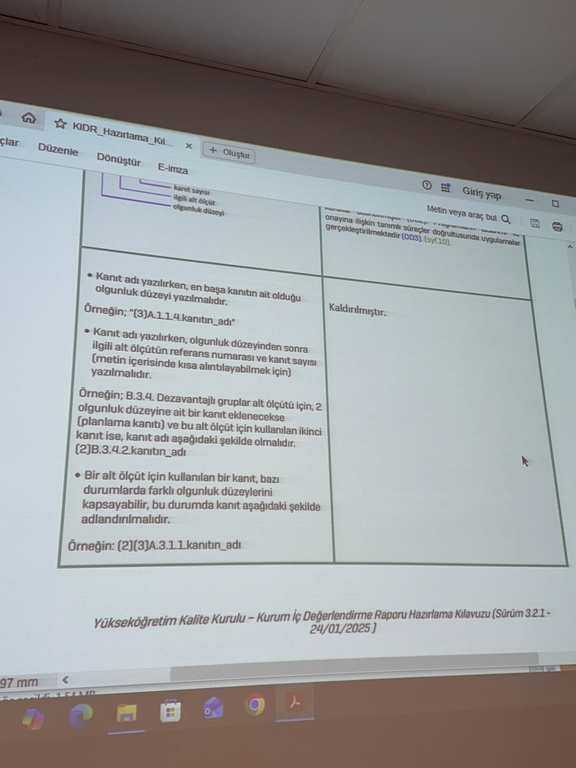Toplantıda, 2025 yılına ilişkin kalite çalışmaları kapsamında Birim İç Değerlendirme Raporu (BİDR) hazırlık süreci ele alınırken, Mesleki Eğitim Değerlendirme ve Akreditasyon Derneği (MEDEK) çalışmaları doğrultusunda yapılması planlanan hazırlıklar ve izlenecek yol haritası değerlendirildi.