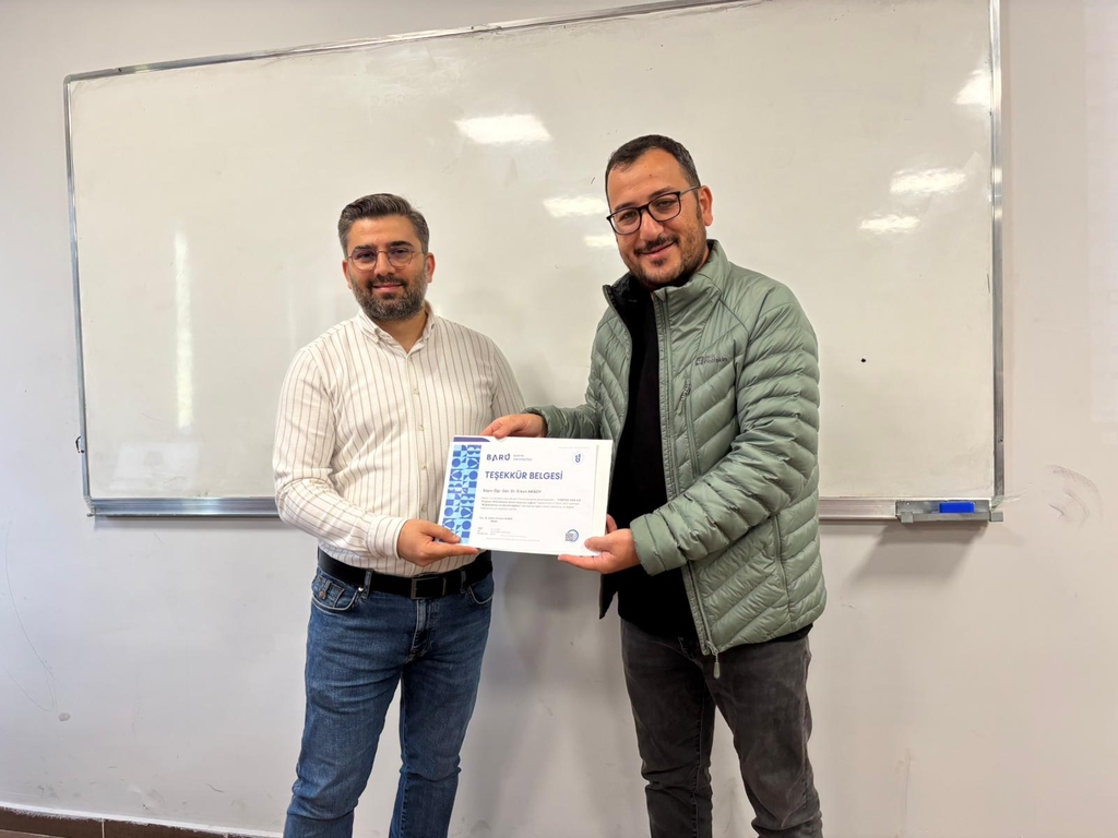Etkinlik, BARÜ Proje Teknoloji Ofisi’nden Öğr. Gör. Dr. Erkan Aksoy’un bilgilendirici sunumuyla başladı. Sunumda, TÜBİTAK’ın öğrencilere sağladığı araştırma destek programlarının içeriği, başvuru koşulları, proje süreçleri ve dikkat edilmesi gereken kritik noktalar detaylı olarak aktarıldı. Dr. Aksoy, proje hazırlama kültürünün öğrencilerde geliştirilmesinin önemine vurgu yaparak; sanayi–öğrenci–akademi iş birliğinin, projelerin başarı şansını artıran en önemli unsurlardan biri olduğunun altını çizdi.