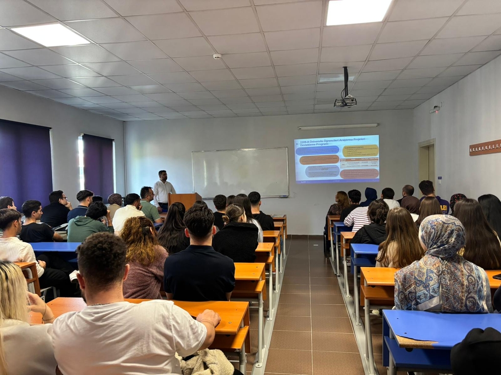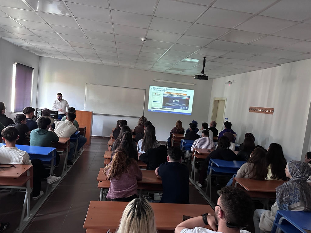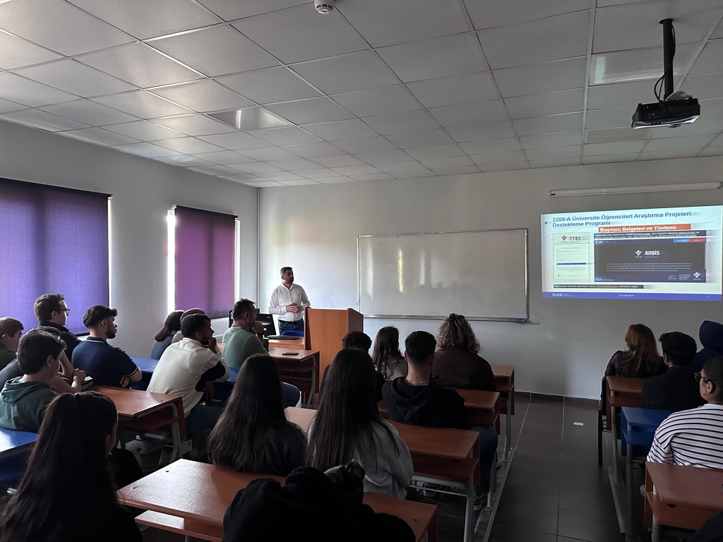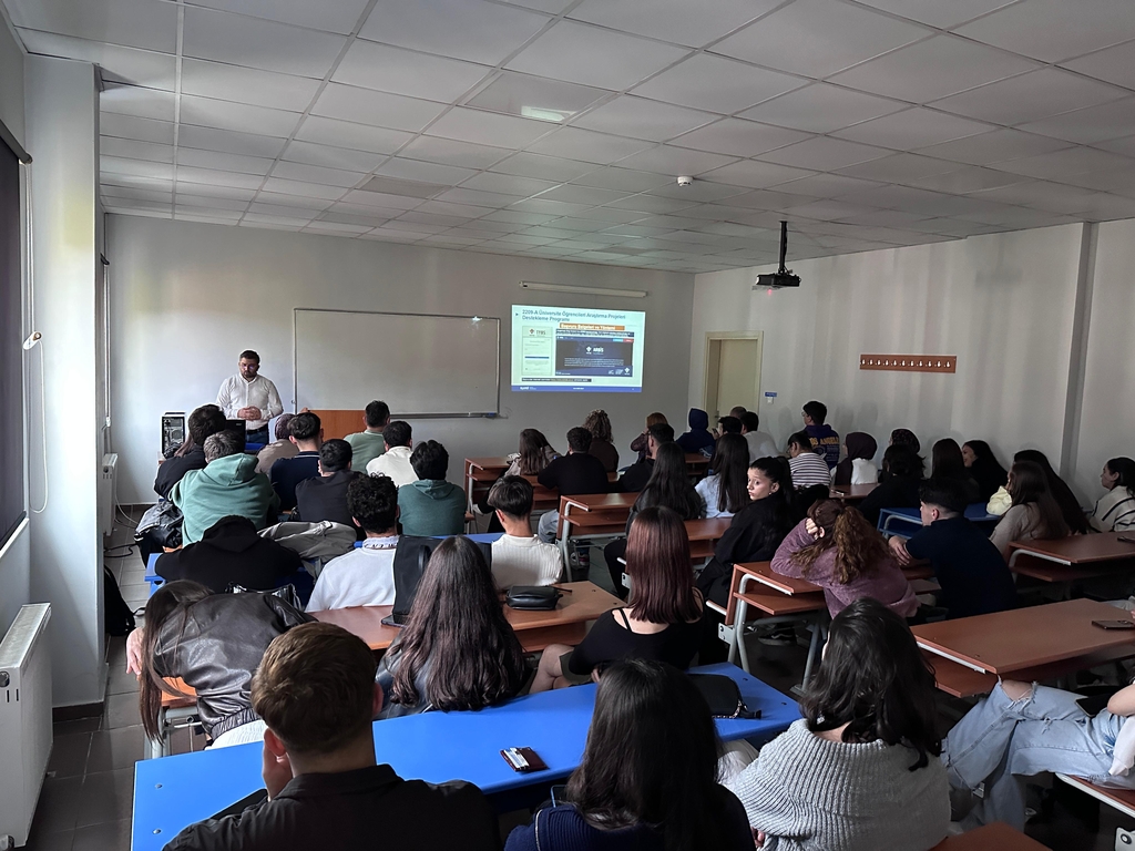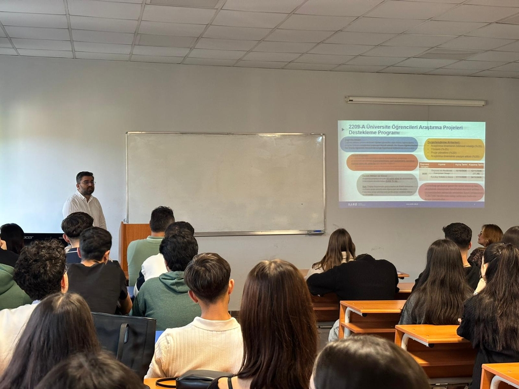 Sunumda ayrıca, 2025 yılı TÜBİTAK 2209-A/B başvurularına getirilen yeni gereklilikler ve süreç güncellemeleri hakkında da kapsamlı bilgilendirme yapıldı. Öğrencilere, proje önerilerinin değerlendirme aşamasında öne çıkan kriterler ve desteklenen alanlar konusunda yol gösterici bilgiler sunuldu.