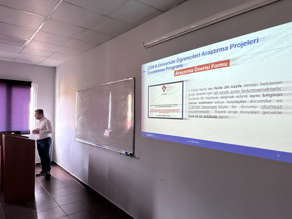 Bartın Üniversitesi (BARÜ) Proje Teknoloji Ofisi Genel Koordinatörlüğü iş birliğinde düzenlenen “Genel Proje Bilgilendirmesi ve TÜBİTAK 2209-A/B Öğrenci Projeleri” etkinliği, bu yıl da öğrencilerin yoğun ilgisiyle gerçekleştirildi.
