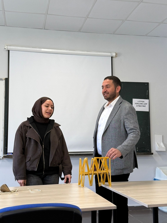 Etkinlik, İnşaat Teknolojisi dersi yürütücüsü Öğr. Gör. Fatih Şerif COŞAN rehberliğinde yürütülürken, Akıllı Altyapılar Teknikerliği Programı öğretim elemanı Öğr. Gör. Taha ÖZ de etkinliğe katılım sağlayarak öğrencilere destek verdi.